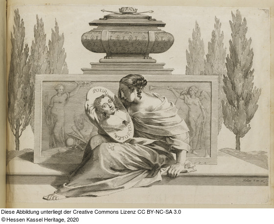 | Hist. Inhaltsverzeichnis: | 76. | Tombeau ou Mausolée; au bas une femme assise qui tient et regarde le portrait de / la Reine mêre, ou est ecrit: Pour me consoler | __ ,, __ [Cl. Mellan inv. et sc.] |