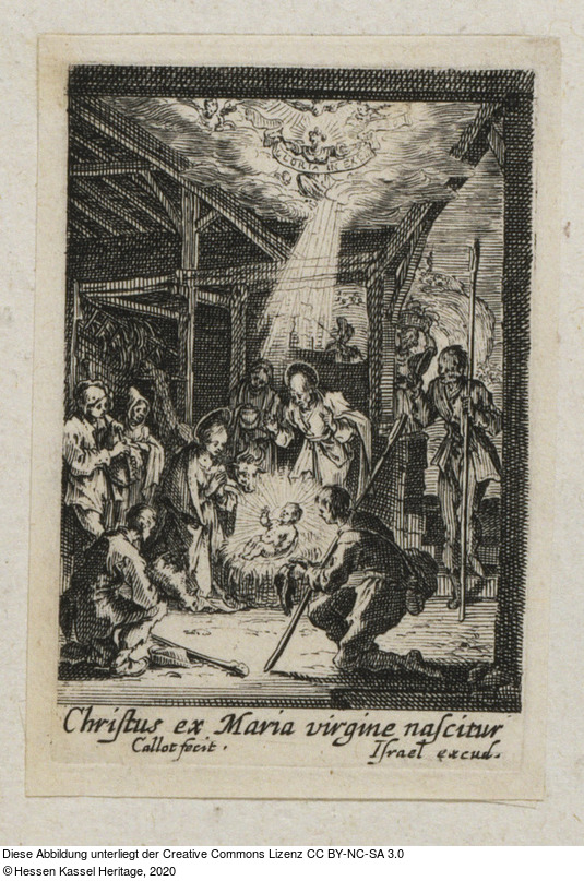 in der Platte: GLORIA IN EXEL DEO; Christus ex Maria Virgine nascitur; Callot fecit.; Israel excud.;