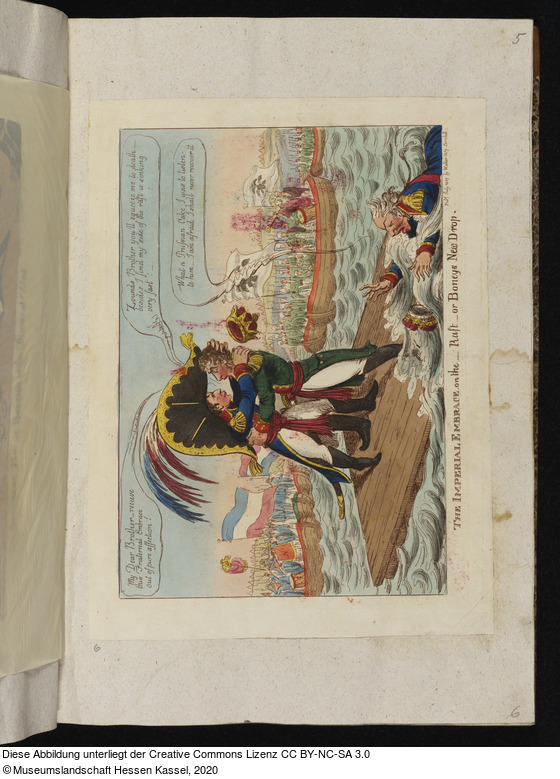 Sekundäre Ikonographie: 44C312 politische Karikaturen und Satiren Primäre Ikonographie: 46C2922 Floß Primäre Ikonographie: 33A14 sich umarmen, küssen Primäre Ikonographie: 41D221(BICORNE) Kopfbedeckung: Zweispitz Primäre Ikonographie: 44B191 Krone (als Symbol der obersten Gewalt) Primäre Ikonographie: 46C2923 über Bord fallen |
