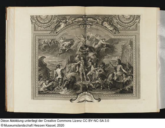in der Platte: LE ROI ARME SUR TERRE ET SUR MER 1672; Peint par Ch. le Brun. et dessiné par J. B. Massé.; gravé par Simoneau. et fini par Cars.; N.o 9;