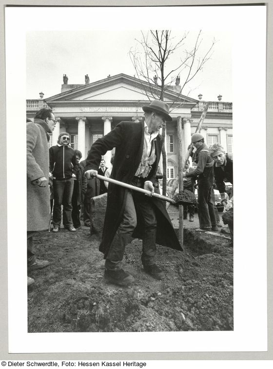 Joseph Beuys bei der Pflanzung der ersten Eiche, Fotodokumentation "7000 Eichen", documenta 7 |