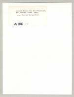 Aufkleber: verso: Joseph Beuys bei der Pflanzung / der ersten Eiche, 1982 / A14 (mit Schreibmaschine);