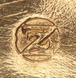 auf der Unterseite des Fußes: Pyr (übergoldet; und Tremolierstrich); Signatur: auf der Unterseite des Fußes: Z (übergoldet; MZ);
