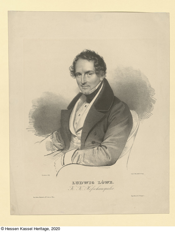 Bezeichnung: unten links: Kriehuber lith.; Bezeichnung: unten rechts: Gedr. B. Mansfeld & Comp.; Bezeichnung: unten mittig: LUDWIG LOeWE. / K.K. Hofschauspieler.; Bezeichnung: unten rechts: Eigenthum des Verlegers.;