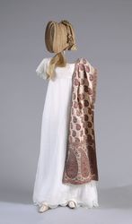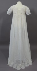 Die Ajourstickerei in weißer Baumwolle besteht aus einem Flächenmuster von schattierten Löchern, daszum Saum hin in eine Reihe von palmettenartig angeordneten Blumensträußen übergeht, die jeweils in einem Bogen der Saumkante liegen. Der Abschluss besteht aus einer weiteren Reihe von dicht aneinander gesetzten Löchern. Der Rock wurde nach der Fertigstellung bestickt, für das Oberteil verwendete man das bereits bestickte Gewebe.