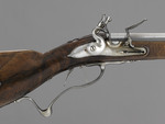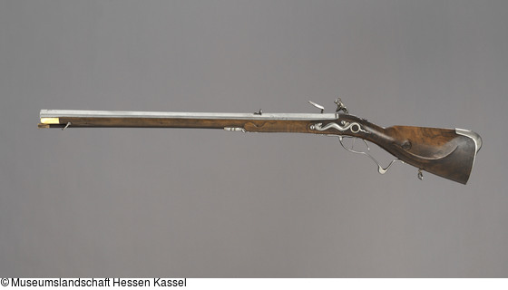 Diese im Dekor elegant zurückgenommene Steinschlossbüchse stammt aus der Werkstatt des Kasseler Hofbüchsenmachers Wilhelm Geschlin (1662-1716).