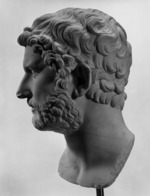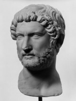 Kopfwendung, Frisur und physiognomische Merkmale lassen den Schluß zu, dass bei der Herstellung des Kasseler Stückes ein antikes Bildnis des Hadrian vom Typus ›Panzerbüste Imperatori 32‹ (Wegner 1956) Pate gestanden hat. Dieser Porträttypus des Kaisers war in der Antike am weitesten verbreitet und wurde wohl im Jahre 128 n. Chr. geschaffen anlässlich der Annahme des Pater Patriae-Titels durch Hadrian (Wegner 1956, 60 f.; Fittschen – Zanker 1985). Das namengebende Exemplar in den Kapitolinischen Museen Rom zeigt jedoch keine gebohrten Pupillen. Daraus ergibt sich die Vermutung, dass dem neuzeitlichen Bildhauer eher die eng verwandte antike Replik des Typus in den Uffizien Florenz als Vorlage gedient hat (Boosen 1985/91, Mansuelli 1961). Sie zählt wie die kapitolinische Porträtbüste zu den am längsten bekannten antiken Exemplaren des Typus (Fittschen – Zanker 1985). Zudem weist sie eine länglichere Gesichtsform auf als das kapitolinische Stück, eine dünnere Augenbrauenschraffur und eine Teilung des Bartes am Kinn. Die genannten Merkmale begegnen uns auch bei der Kasseler Nachbildung.