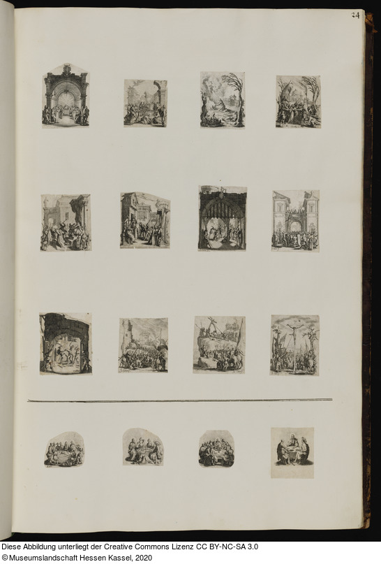 24 | la petite Passion, en 12 morceaux. / Les quatre Banquets, petites pieces; scavoir: / la nôce de Canaan: / le souper chez le Pharisien: / la Cêne, & / le souper des disciples d’Emaüs. |