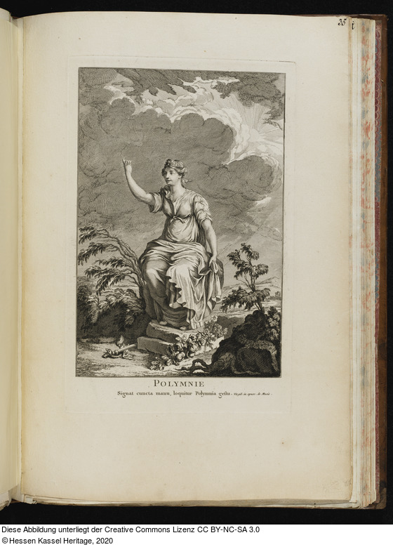 Beschriftungen: in der Platte: POLYMNIE; Signat cuncta manu, loquitur Polymnia gestu. Virgil. in opusc. de Musis.;