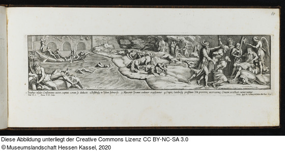 Primäre Ikonographie: 45I1 Kriegsgefangener (nach der Schlacht) Sekundäre Ikonographie: 31E3 der Leichnam Primäre Ikonographie: 25H213 Fluß Sekundäre Ikonographie: 31E34 eine tote Person (auf)finden Primäre Ikonographie: 46C112 Brücke Primäre Ikonographie: 25H2130(TIBER) Personifikation des Flusses Tiber; Ripa: Tevere |