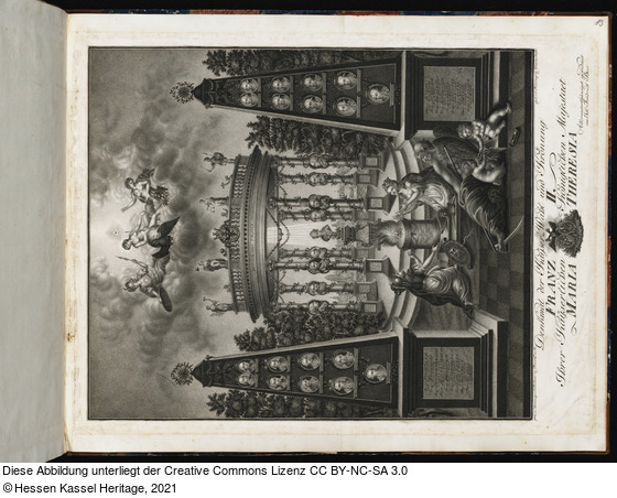 in der Platte: DEUTSCHLANDS FÜRSTEN-TEMPEL.; C. MAINZ I. WAHLB. ... C. Sachs. III Wahlb.; gem. u. herausg. v. J. F. Beer zu Frankft. a. M.; gest. v. Felsing zu Darmstadt.; Denkmal der Kayser=Wahl und Krönung FRANZ II.; Ihrer Kayserlichen Königlichen Majestaet MARIA THER;