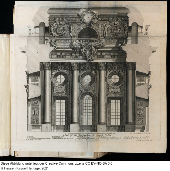 in der Platte: Ioh: Conradt Reiff. fec: Norimb:; 40.; Auffriß der Fenster Seite des Speiß Sahls.; A. Fenster ... O. Schiedwand; P. D. Archi: inv. delin.; Cum Gratia et Pr. Sac. Caes. Majest.; I. Wolff excu. Aug. Vind.;
