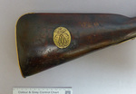 Die Steinschloßmuskete ist dank der in den Kolben eingelassenen Messingplatte mit dem bekrönten Spiegelmonogramm "LC" eindeutig als Waffe aus der Zeit Landgraf Carls zu identifizieren. Musketen gehörten zur Ausrüstung der hessischen Infanterieregimenter. Bemerkenswert ist das ausklappbare Bajonett, das unterhalb des Laufs angebracht ist und wohl eine Seltenheit darstellt (Kat. Kassel 2018, S. 222f.).